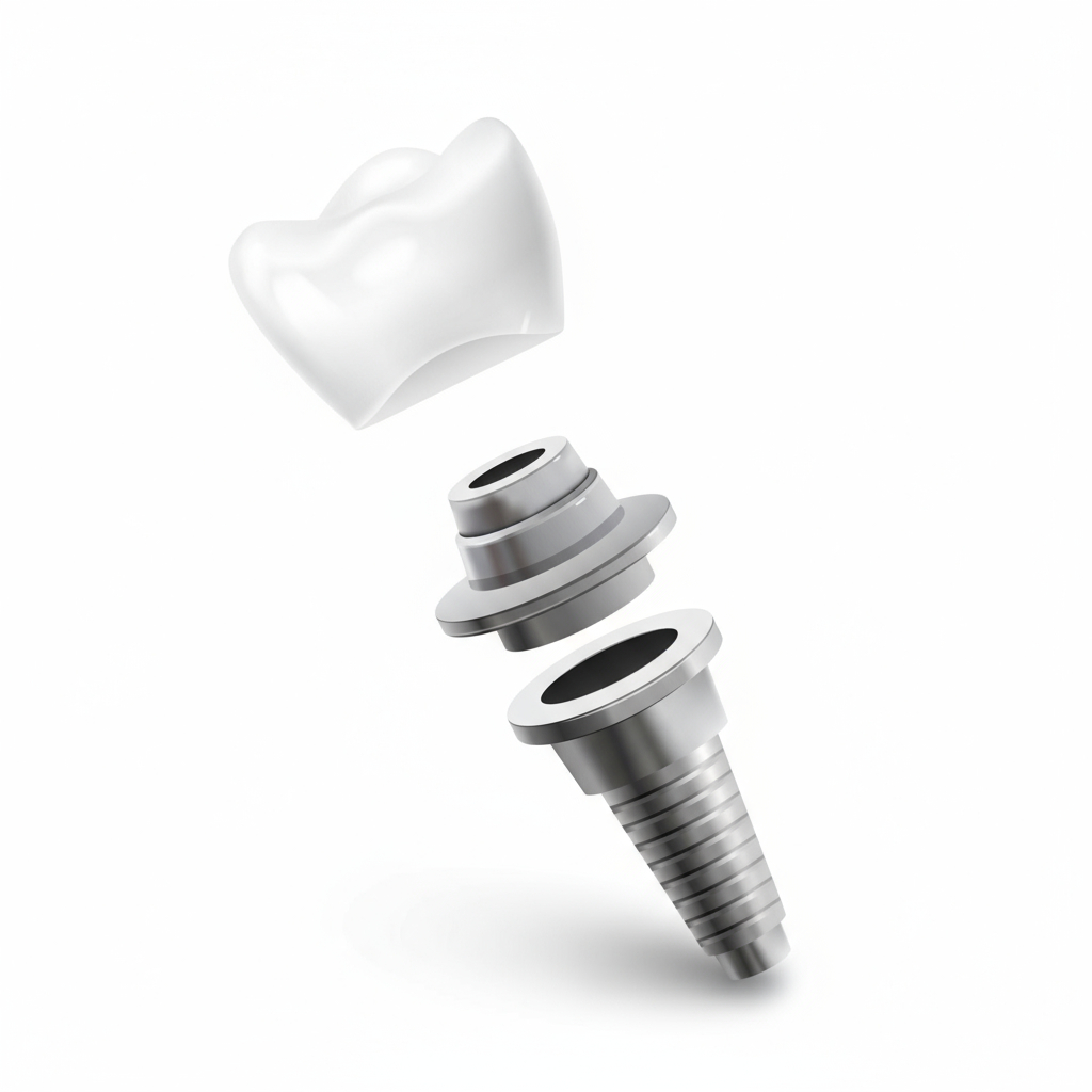O implante dentário é a forma mais moderna e segura de substituir dentes perdidos. Ele funciona como uma raiz artificial: um pequeno pino de titânio (material biocompatível) é fixado cirurgicamente no osso maxilar ou mandibular.